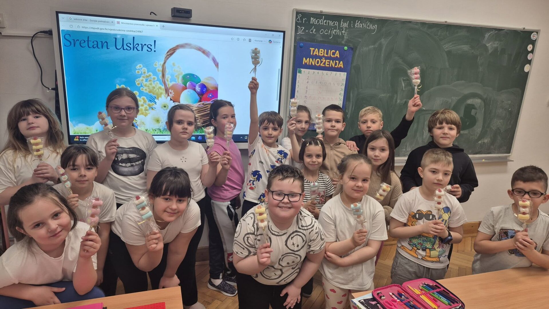 Zadnji tjedan nastave bio je u znaku Uskrsa, a osim što smo na satu hrvatskog jezika čitali uskrsne pjesme, na satu glazbene kulture ih pjevali, održali smo uskrsnu radionicu izrade uskrsnih vjenčića i uskrsnih košarica punjenih čokoladnim jajima.