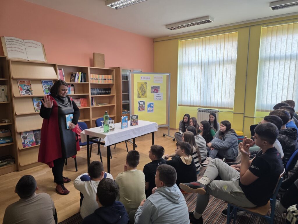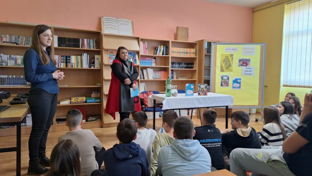 U povodu obilježavanja Mjeseca hrvatske knjige i u organizaciji nakladničke kuće Školska knjiga, dana 4. 11. 2025. g. održan je književni susret s Ivanom Adlešić Pervan koja je prvi put posjetila našu školu i predstavila svoj prvi roman „Stepenice do neba”.