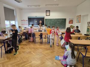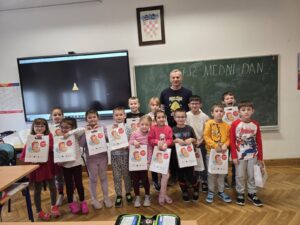 Školski medni dan obilježili smo 8.12.. Učenici 1.a razreda sa svojom učiteljicom Tatjanom Maršić pažljivo su slušali našeg gosta, medara Duška Grdića iz Čačinaca. Učili su o važnosti pčela za našu planetu, o njihovom vrijednom i složnom radu te o zdravlju koje nam donose med i pčelinji proizvodi.