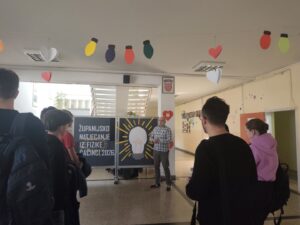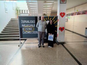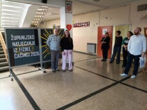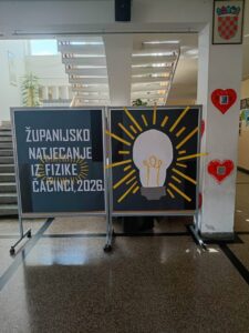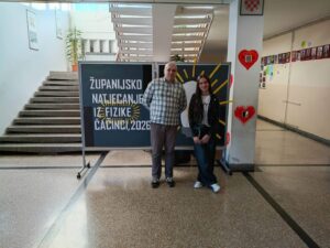 Županijsko natjecanje iz fizike održano je 25. 2. 2026. u našoj školi, okupivši 20 najuspješnijih učenika osnovnih i srednjih škola iz cijele Županije. Ravnateljica škole, Kristina Krmpotić, izrazila je dobrodošlicu sudionicima natjecanja i s predsjednikom Županijskog povjerenstva, Miroslavom Hanižarom, poželjela svima mnogo sreće i uspjeha na natjecanju.